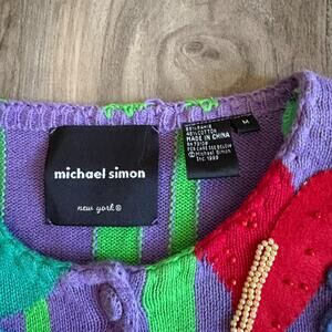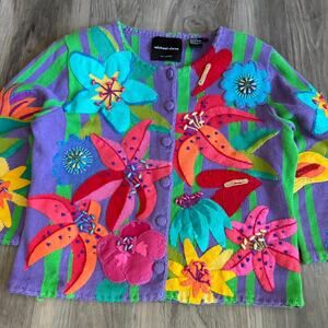 Vintage 1999 Michael Simon Flower Cardigan Sweater Size M RARE Flowers Beads