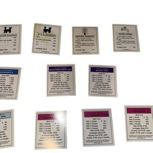 Vintage 1999 Monopoly Title Deed Cards Complete Set Replacement Parts White