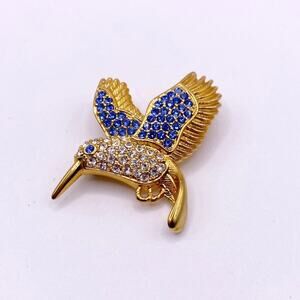 Vintage 1999 Plainville Stock Co PSCO Rhinestone Hummingbird Blue Pin Brooch 2 inches long