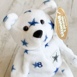 Relevant tags: Dallas Cowboys, Troy Aikman, Salvinos Bammers, NFL plush, collectible bear, vintage 1999, football memorabilia, quarterback #8, stuffed animal, sports collectible, fan gift, rare plush, retro toy, NFL licensed, Salvino bear, gift, stocking stuffer