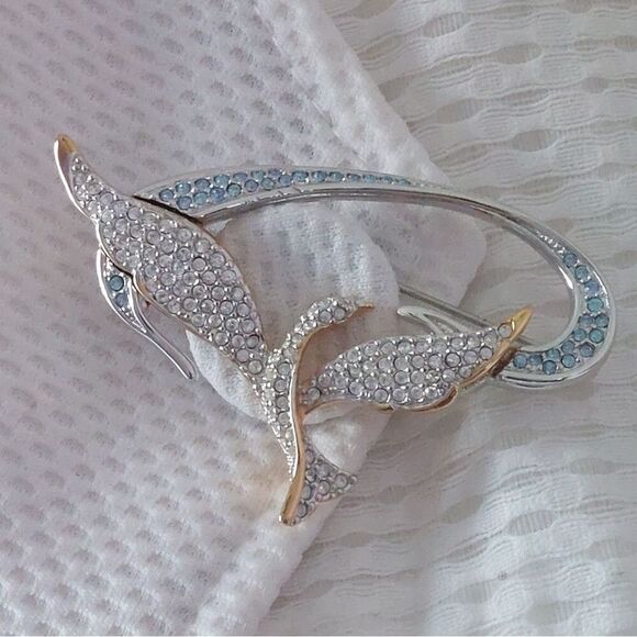 Vintage 1999 Swarovski Flying Bird Freedom Brooch Pin Crystal Paved Two Tones