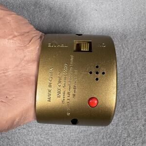 This is a realistic, life-sized animatronic hand Halloween prop made by Take One, manufactured in 1999 by L.J. Liff and Associates Limited. Features a gold-colored base with control switch for "Try Me" and "On." Text on the back includes "MADE IN CHINA," "TAKE ONE," Phoenix, Arizona 85022, © 1999 L.J. Liff and Associates Limited. All rights reserved.