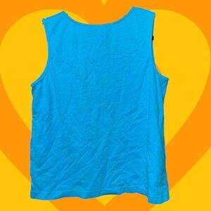 Vintage 1999 Tweety Bird tank top featuring the iconic Tweety screen print with bold blue fabric and playful pink and green swirls. A retro classic for your closet!
