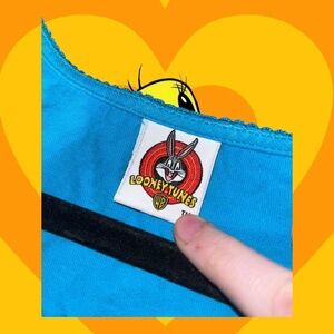 Measurements: Bust 38 in. Length 22.5 Size: NA REFER TO MEASUREMENTS Brand: Looney Tunes Animal friendly home: cat/dog/. SMOKE FREE Tags: #v1ntageunkn0wn #looneytunes #vintage90s #retro #cartoons