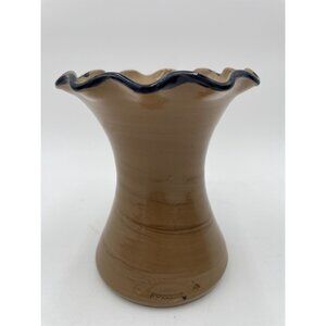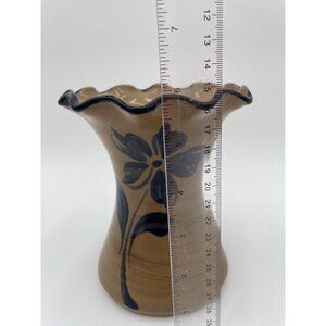 Crafted in 1999, this Williamsburg pottery vase exudes a timeless charm with its elegant floral design. The delicate blue flower set against a warm brown background showcases exquisite artistry. The ruffled edges add a sophisticated touch, making it a fine addition to any collection of vintage ceramics.