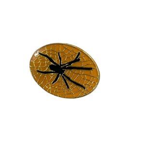 Vintage 1" Lucite Covered Arachnid Orange and Black Spider Oval Lapel Pin