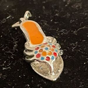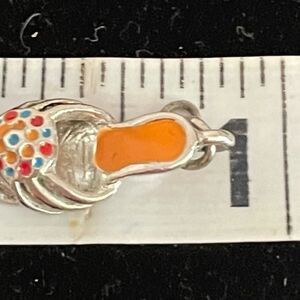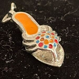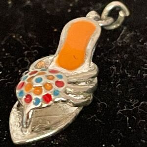 Vintage 1” silver tone orange enamel multi color strap heeled flip flop charm