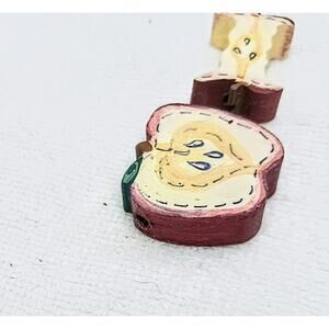 Vintage 2 Apple Shaped Wooden Beads Red Jewelry Making Crafts Loose Art Supply