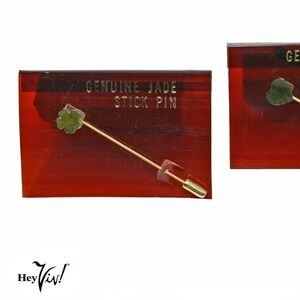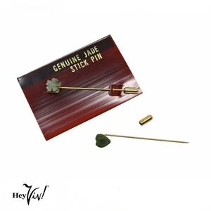 Vintage 2 Genuine Jade Stick Pins Taiwan ROC Label Clover & Heart Shape -Hey Viv