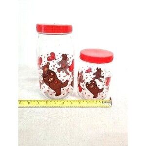 Add a touch of vintage charm to your kitchen with this adorable set of 2 Teddy Bear candy jars. The jars are made of glass and come with screw top lids made of plastic. The colorful jars are in the shape of a cylinder and have a height of 9.5 and 6.5 inches respectively. The jars are decorated with cute Teddy Bear designs in a pop art style, each holding a balloon.
