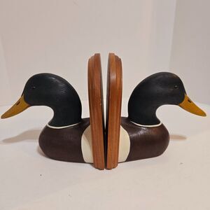Vintage ( set of 2) Jennings Decoy Co MN Mallard Duck Bookends Artist Signed Handpainted, 1992
