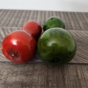 Vintage 2 Painted Bottleneck Gourds Small Red Green Fall Decorations