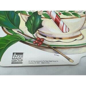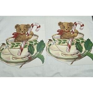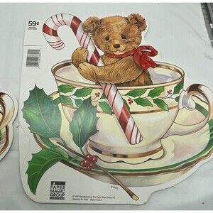 Vintage 2 Paper Magic Group Christmas candy cane Bear in tea cup Die Cut Decoration Paper 12. Measurements photographed. See pictures, please. Ships quickly