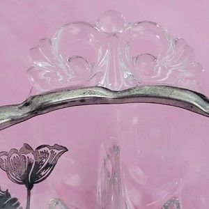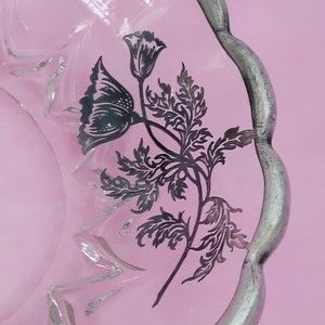 Vintage Divided Relish Dish w Floral Silver Overlay by Silver City Flanders Poppies