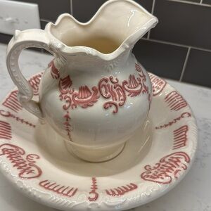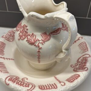 Vintage 2 Pc Arnel's Ceramic Floral Flowers Pitcher & Wash Bowl Basin