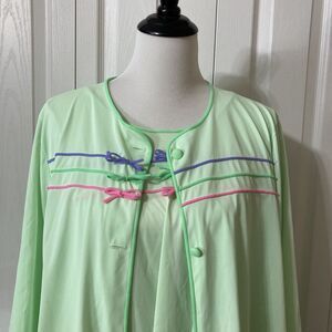 Vintage 2 Pc Lorraine Green Nylon Babydoll Nightgown and Robe Peignoir