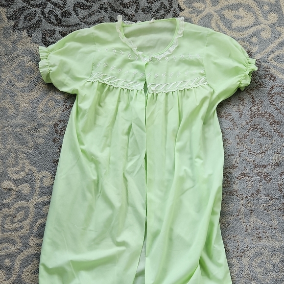 Vintage 2 piece light green nightgown featuring delicate lace trim.