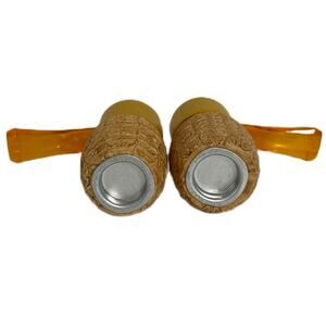 - Tops are painted wood with Plastic Mouthpieces, I don't know what the bottoms are made of.