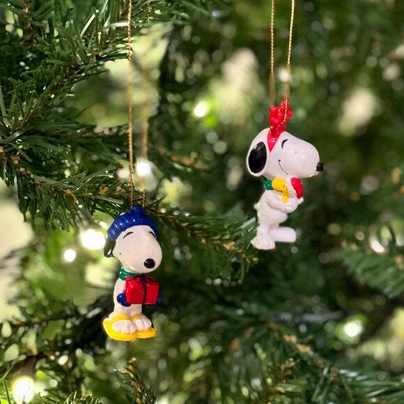 Vintage (2) Snoopy and Woodstock Christmas Tree Ornaments