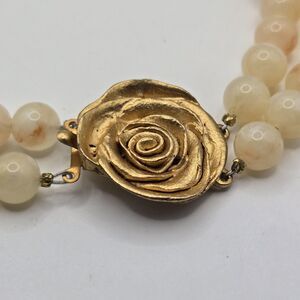 Vintage 2 Strand Choker Necklace Honey Yellow Lucite Beads Gold-Tone Rose Clasp