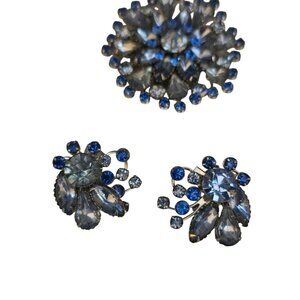 Vintage 2 Tone Blue Rhinestone Brooch Set (A7896)