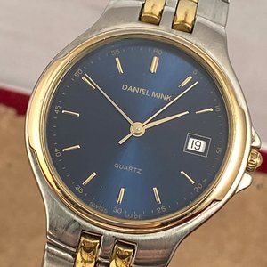 Vintage 2 Tone Daniel Mink Swiss Made Watch Elegantly Styled Blue Face