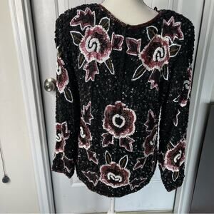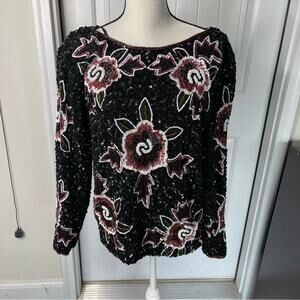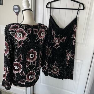 Vintage 2 piece set sequin beaded floral embellished skirt and top size XL