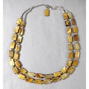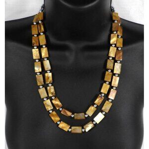 Vintage 2 strand brown rectangular beads with silver necklace 20" adjustable