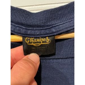 Vintage 2000 Changes Atari promo tee. The measurements are a 23 inch chest width by a 28.5 inch length. In good condition, has no flaws. The shirt is navy with a white screen printed graphic.