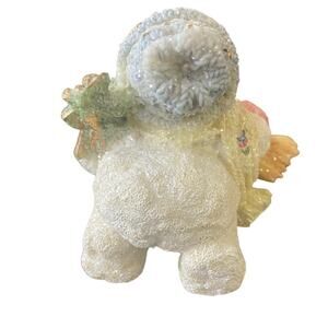 Add a charming vintage touch to your holiday decor with this adorable set of 2 snowman figurines by Cornerstone Creations (2000). Each snowman measures approximately 4.5" tall and 4" wide and features hand-painted details, glitter accents, and textured “knit” scarves and hats. One snowman is decorated in soft pastel colors, while the other sparkles in silver and white—both carrying a glittered Christmas tree.