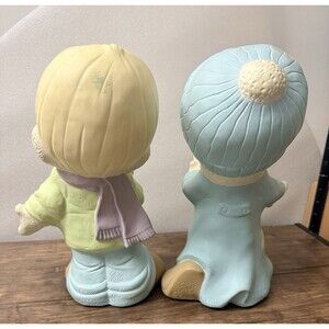 This is a vintage 2000 Precious Moments boy and girl Christmas caroler figurines set.