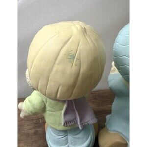 The figurines are part of the Precious Moments collection, known for their distinctive tear-drop eyed characters