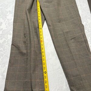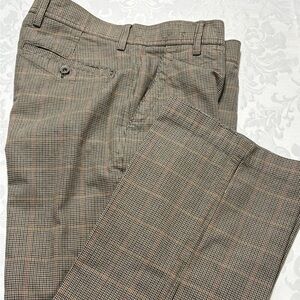 The product is a pair of vintage 2000's Old Navy dress pants for men in a black red plaid pattern. The pants feature a flat front and straight legs, offering a classic and versatile style. The size type is regular with a waist size of 32 inches and inseam length of 30 inches, making them suitable for everyday wear or dressier occasions. Perfect for adding a touch of retro flair to any wardrobe, these pants from Old Navy are a timeless and stylish choice.