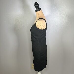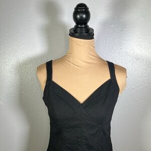 Vintage 2000s- 2010s Bebe black bodycon linen blend mini dress. Has a bustier style sweatheart neckline, with wide straps. Multiple seam design. Body hugging to enhance curves. Lined & has side zipper. Perfect for a date night or night out look. Dress up or down. Great used condition, no major signs of wear.