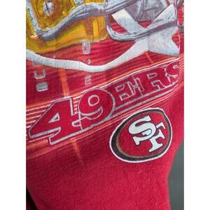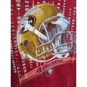 Own a piece of early 2000s NFL fanwear with this vintage San Francisco 49ers t-shirt from NFL Team Apparel. Features a bold 49ers football helmet graphic with "National Football League" text in the background.