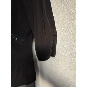 Vintage Black Wrap Top Lace Beaded Sequin Y2K Blouse Small