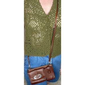 Vintage 2000s Brighton Y2K Aesthetic Brown Leather Crossbody Purse Shoulder Bag