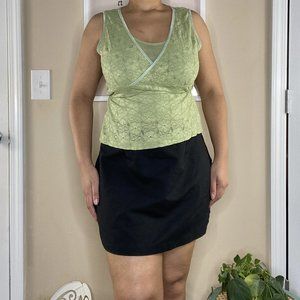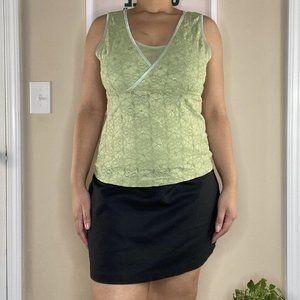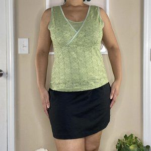 Brand: Covington, Size: Medium. Condition: Pre-owned, good. Stretchy and lining underneath. Measurements: pit to pit: 18.5", waist: 34", length: 23". The top is tucked in the bra in the last picture.