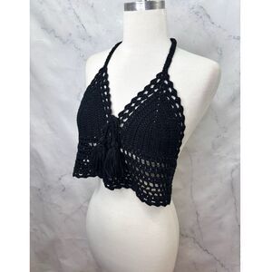 Vintage 2000s Papaya usa y2k Crochet Crop halter Top XL Women's Festival Gypsy