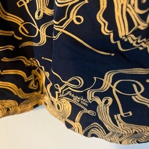 Vintage 2000s Prairie New York Gold Navy Tunic Dress Silk Lycra Large