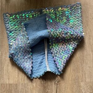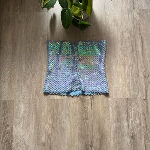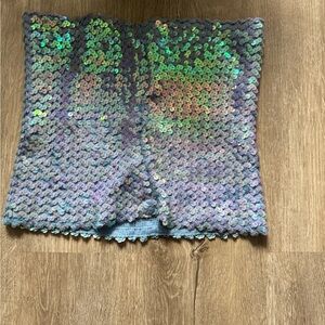 Has flaws and it has been altered and not professionally. Again it has flaws and has been altered. This a vintage piece missing some sequins and flaws all around