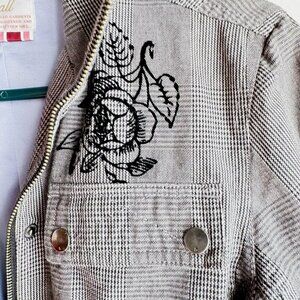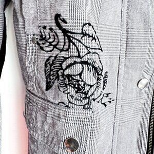 Vintage 2000s Triple Five Soul Fine Plaid Floral Velvet Flocked Jacket S.