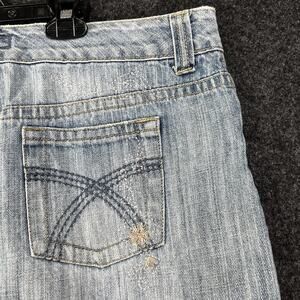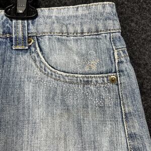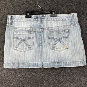 Vintage 2000s Y2K Low Rise Denim Micro Mini Skirt Embroidered Retro Festival 34"