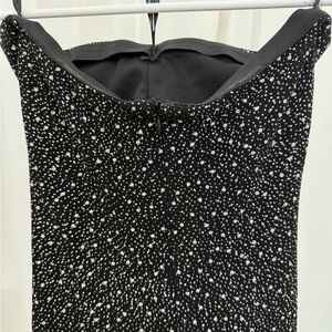 This elegant black + silver strapless dress is perfect for any occasion. In great condition for early 2000s.