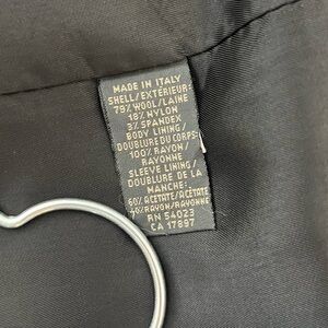 Vintage 2001 Banana Republic men's classic black 3 button blazer/sport coat in size 42R. Made in Italy. 79% wool, 18% nylon, 3% spandex. In good vintage condition. No holes, rips, or stains.