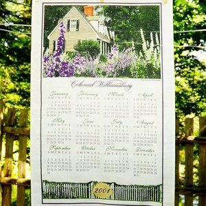 Vintage 2001 Colonial Williamsburg VA Calendar Towel Custis Tenement & Gardens