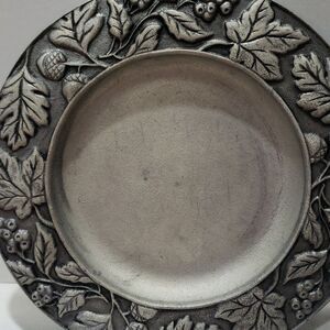 Vintage 2001 Longaberger Round Tray; Pewter; Acorns/Berries/Leaves; Fall.