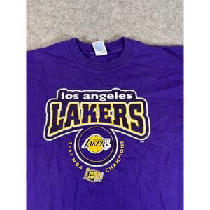 Vintage Y2K 2001 Los Angeles Lakers NBA Champions Finals T-Shirt Mens Large Purple Basketball Sportswear