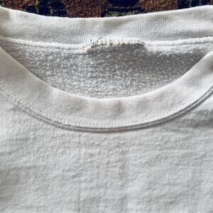 The sweatshirt is in excellent condition, other than the two small stains as shown in the pictures. They are both on the sleeve, small, and not highly noticeable.