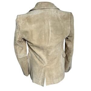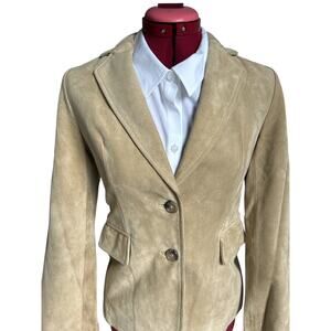 Vintage 2002 Banana Republic Women's Size 0 Genuine Leather Tan 2 Button Blazer Jacket